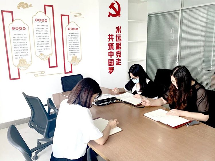 6月27日,在云網(wǎng)集團(tuán)黨支部的組織下,黨員干部董煥鋒,王俊英,朱川香(線上),